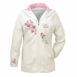 This stylishly designed women's sweatshirt provides the comfort of a hoodie and the beauty of a unique flower design. The custom artistry of pretty pink roses is featured on the front, back and sleeve. This wearable work of art is soft, warm and comfortable enough to wear every day!
